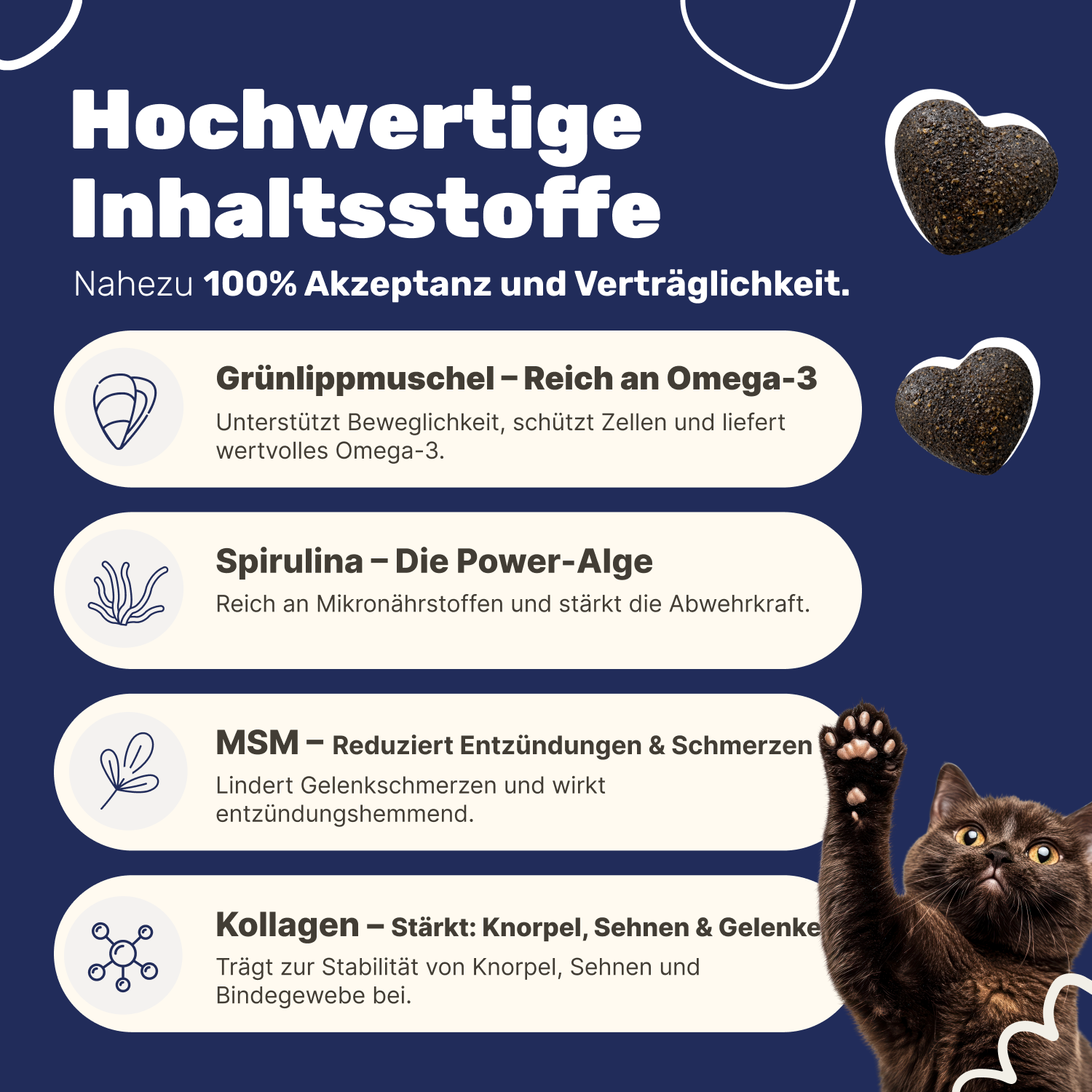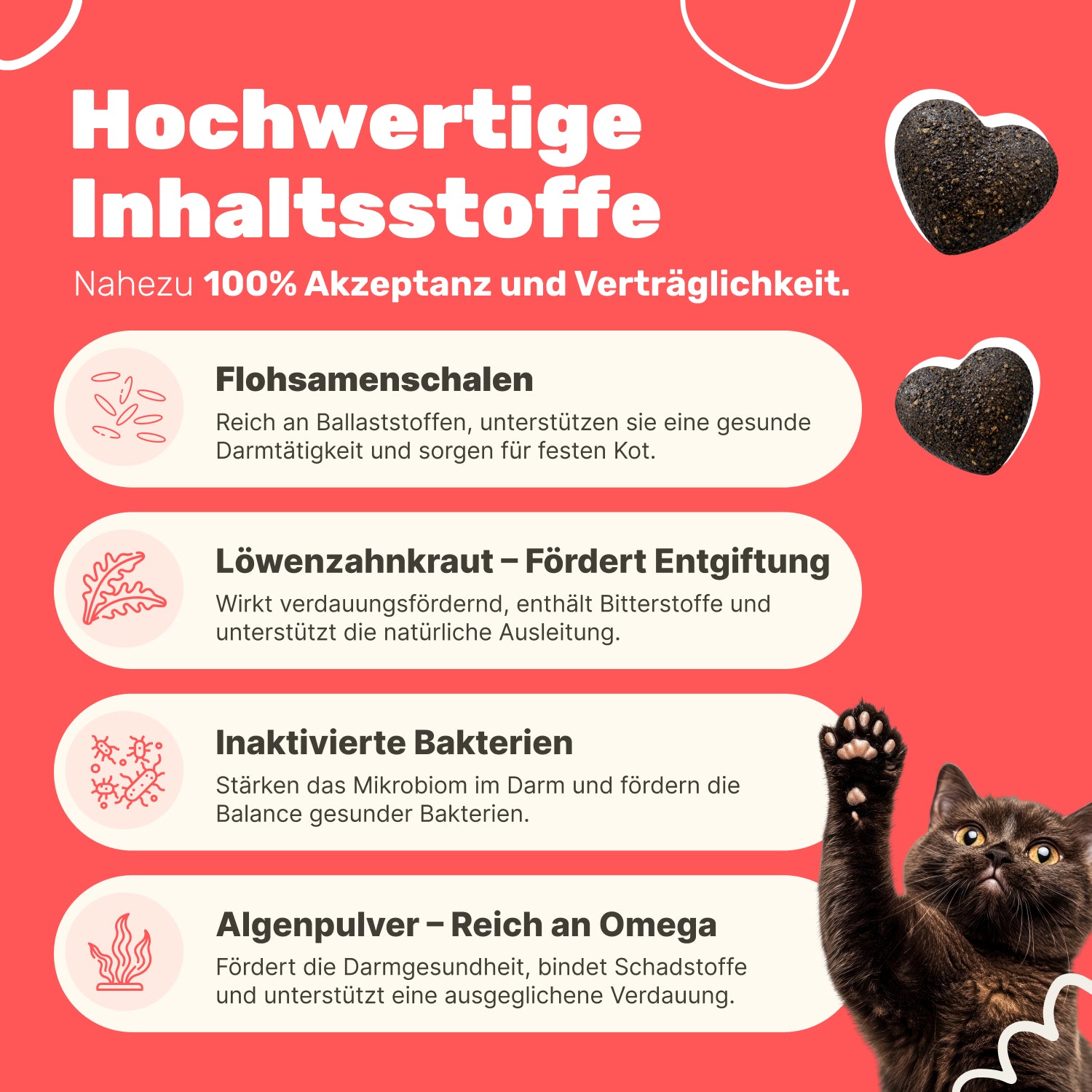 Gerade bei gesunden Katzen ist eine frühzeitige Unterstützung sinnvoll, bevor Belastungen entstehen. Ein kleiner Snack, der Großes bewirken kann – sichtbar schon nach wenigen Wochen.
